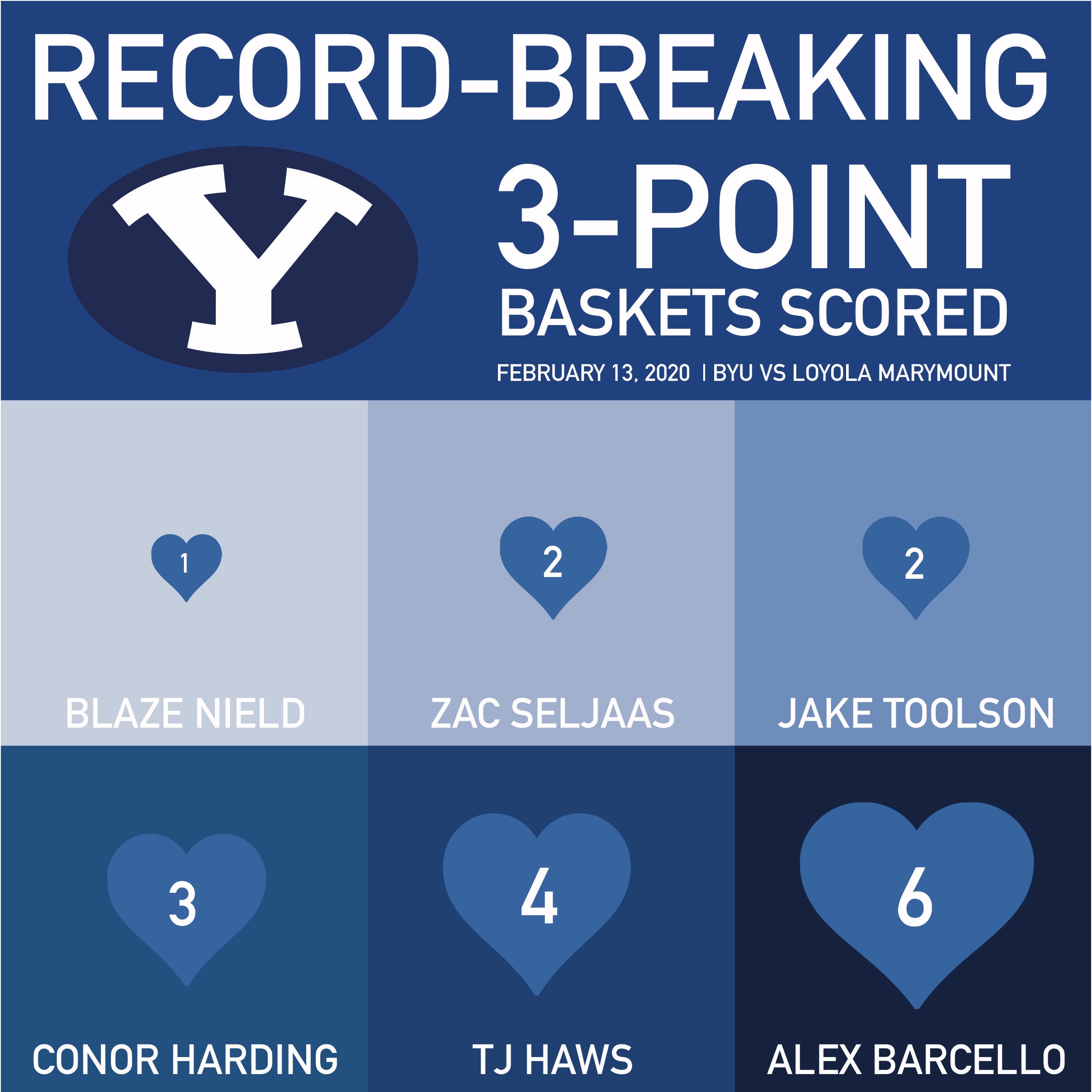 BYU hit a school record 18 three point shots in their 23 point win over Loyola Marymount University on Thursday night. Let’s take a deep dive on how the Cougars excelled so much from beyond the arc in this special game.