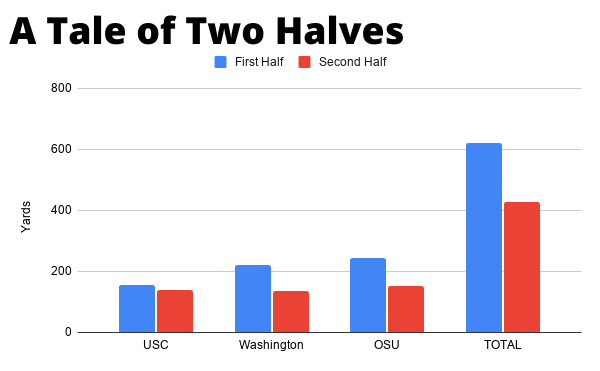 In every game this year, Utah has been unable to produce in the second half. In the first half, they’re averaging 207 yards of offense but just 142 in the second half. The offense has scored 47 points in the first half but just seven in the second half (not counting defense or special teams touchdowns).