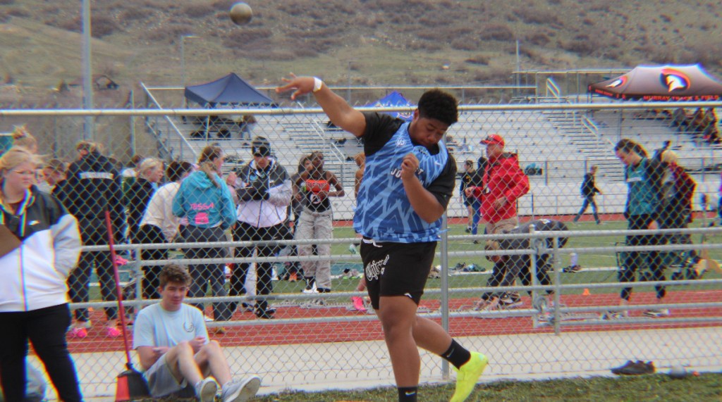 Mountain Ridge senior Grace Tycksen took first in the javelin throw event with a personal best and state-qualifying 110’08” throw. Hunter High School senior Saraih Sotele won the girls shot put event with a throw of 39’09”. Corner Canyon senior Kalo Fifita won the discus event with a personal best throw of 132′.