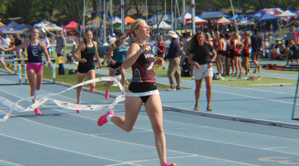 The girl’s 3200m event saw Westlake High School senior Shelby Jensen win in a time of 10:43.73. Second place finisher was Bingham High School senior Natalie Swain in a personal best time of 10:46.20. Finishing in third place was Layton High School senior Hailey Low in a personal best time of 10:50.29. Westlake impressed by placing three runners in the top eight, with Jensen in first, sophomore Millie Robinson finishing seventh in 11:02.89, and freshman Marci Havens placing eighth in 11:03.95.