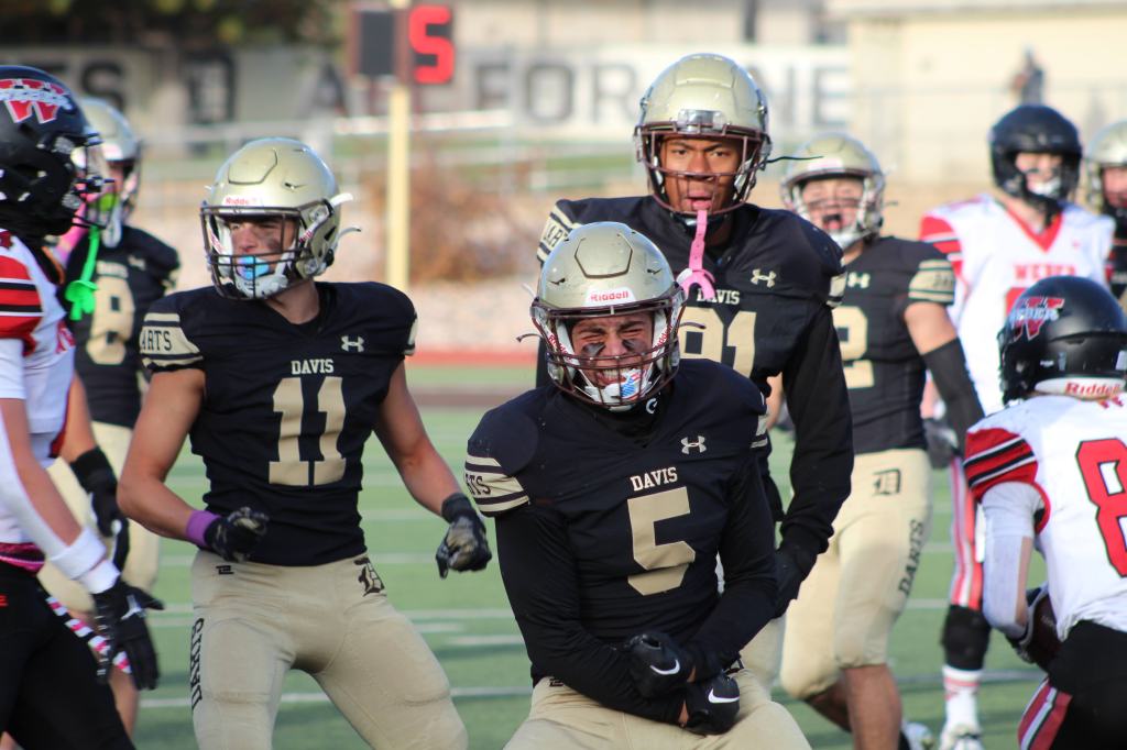 The Darts’ defense lost starting senior linebackers Carter Dorius in the first quarter and Jacob Faerber earlier in the season to injuries. Seniors Crew Cunningham, George Drakos, Deuce Wright, Taula, and McCoy Frasure led the defensive effort to hold the Warriors’ explosive offense to 13 points.