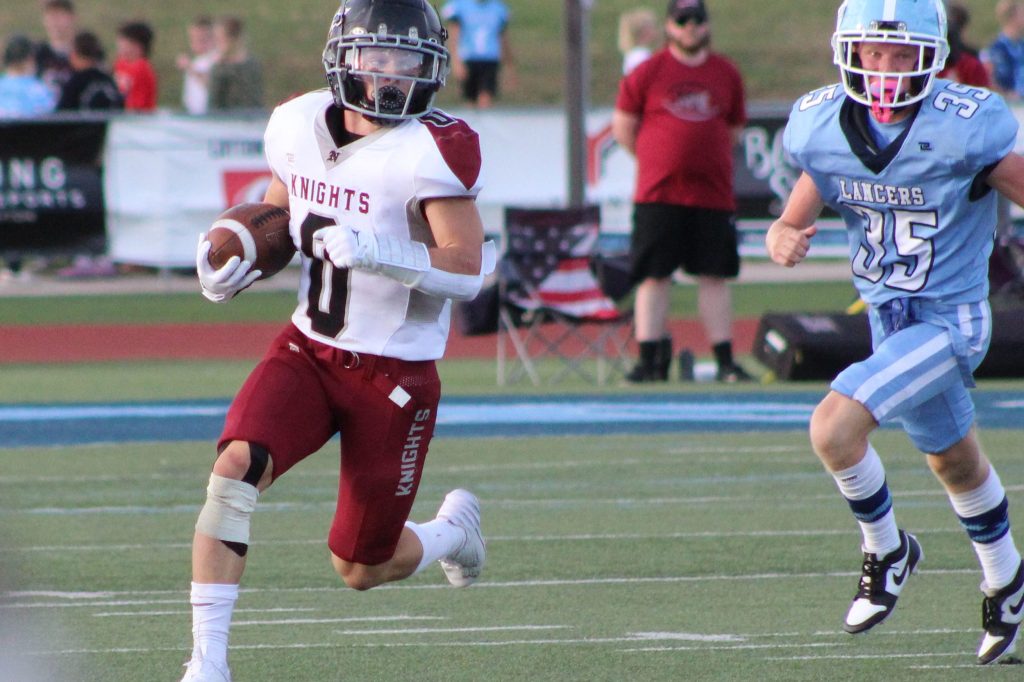 The Knights’ defense was the highlight of a big-play, hard-hitting contest that showcased talented players on both teams. Both teams entered the game having won their week one matchup, and starting the season 2-0 would be a significant boost. The Knights had the Lancers down for three quarters until the Lancers’ offense started picking up steam and fell just short in the final minutes.