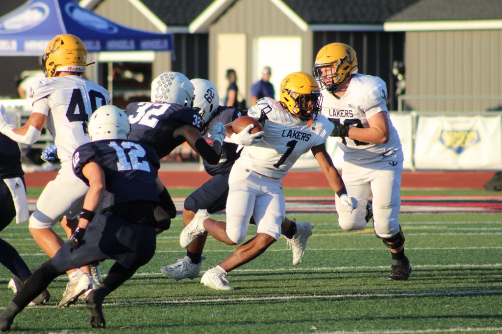 Lueders was excellent throughout the game with pinpoint passing, and the offensive line gave him time to find his playmakers downfield. Both teams battled through numerous penalties that either stalled or extended drives throughout the game, but the Lakers were able to put a final drive together and secure the win.