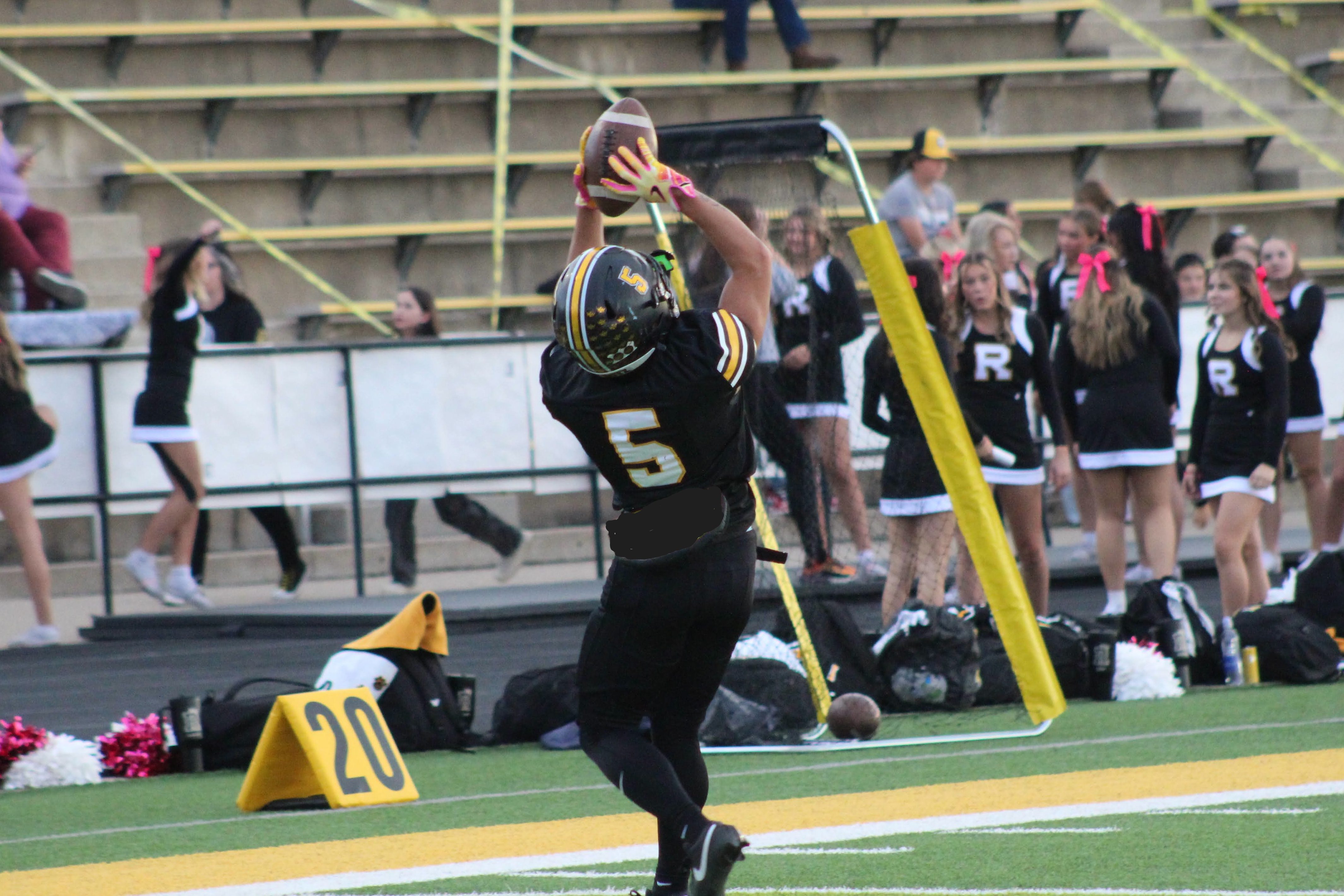After a miscue on the kickoff, the Royals started their next possession at their two-yard line. The Royals offense would put together a 12-play, 98-yard drive that ended with quarterback Dru Gardner finding Young in the flat for a 29-yard touchdown. The Royals would hold a 14-7 lead over the Redhawks to end the first quarter.