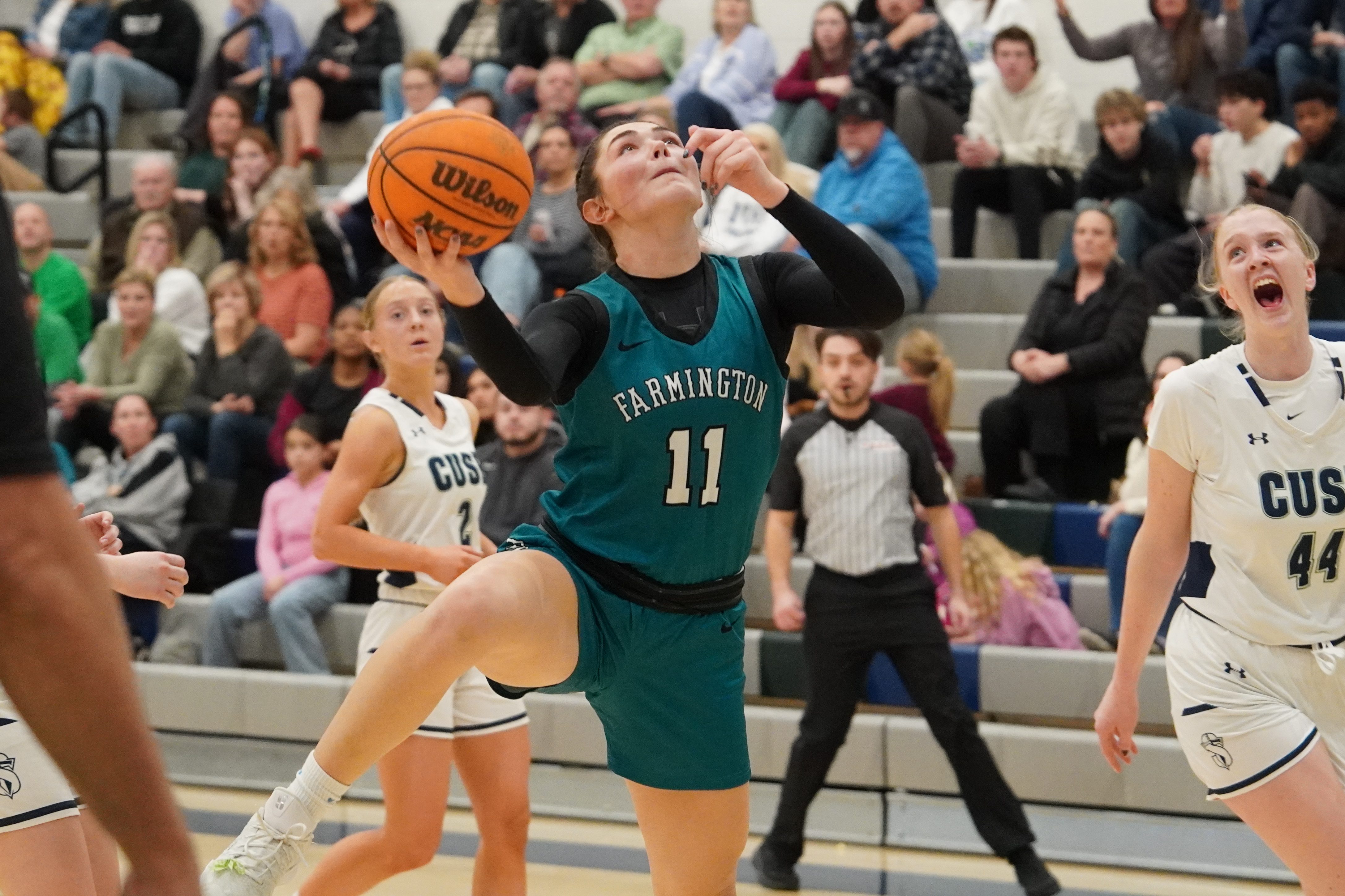 The second half began exactly as the first half ended: with another Phoenix three. This time, sophomore Ellie Dorius connected, pushing Farmington ahead 28–16 and threatening to break the game open.