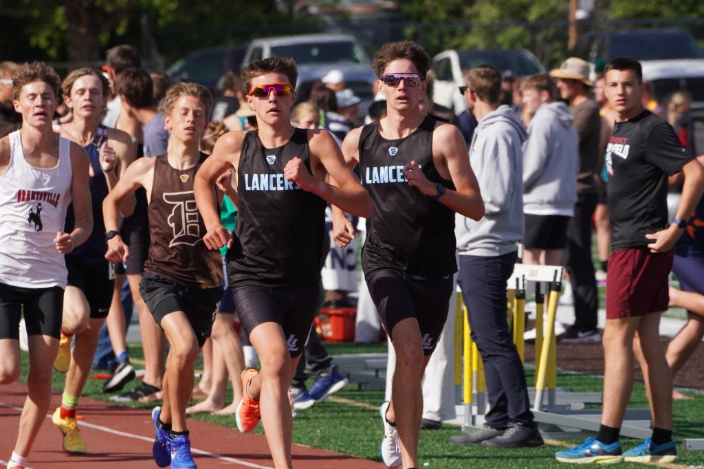 The 1600 meters brought one of the most exciting finishes of the day as Layton teammates Colin Pugmire and Parker Harris battled stride‑for‑stride down the homestretch. Pugmire edged ahead in the final meters to win in 4:21.85, with Harris just behind in 4:22.23, giving the Lancers a memorable 1‑2 sweep.