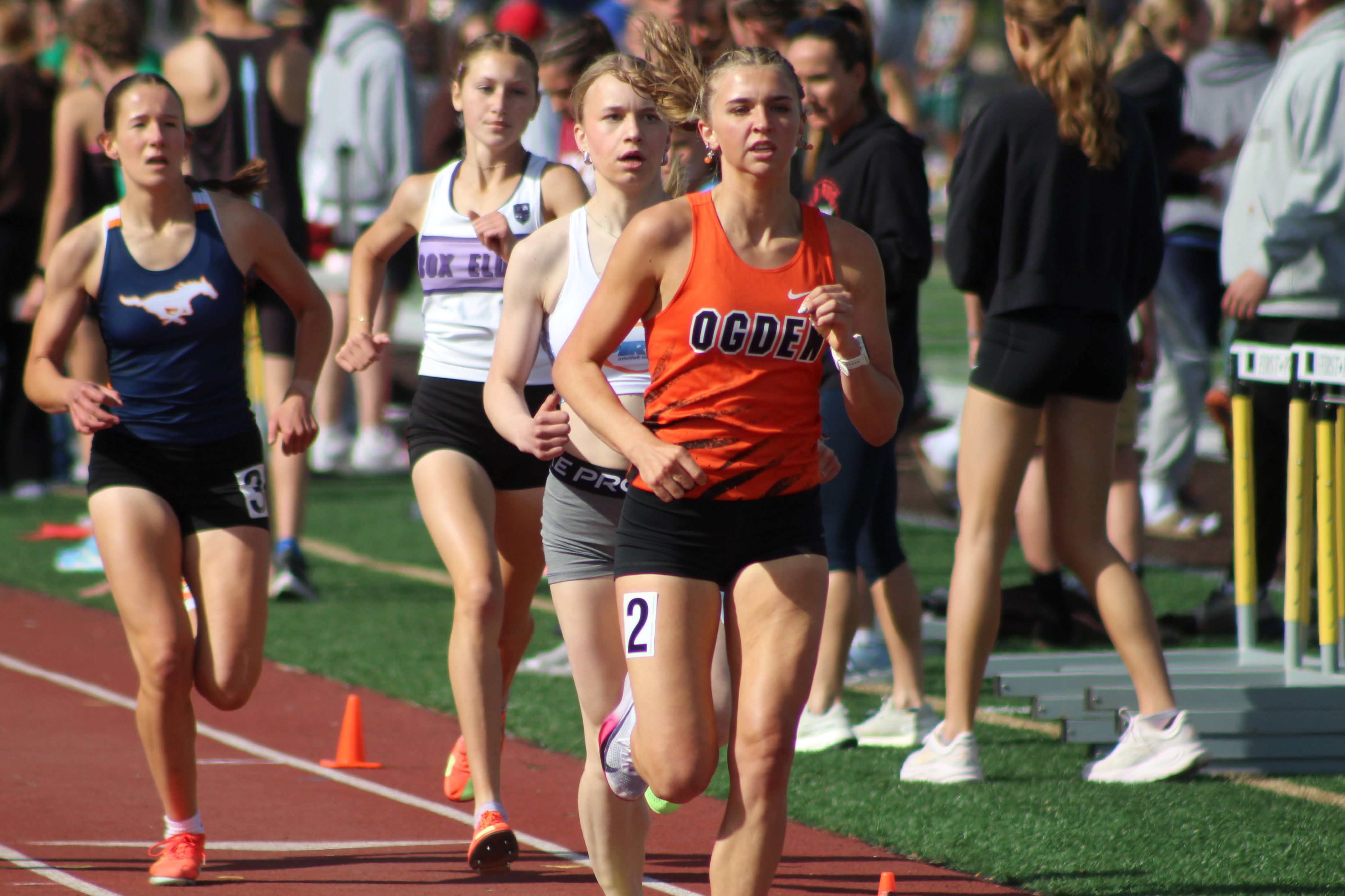 Box Elder senior Maya Lee added one of the strongest runs of her career, finishing fourth in a personal‑best 5:10.31. Barton wasn’t done, though; she capped her day with a decisive win in the 3200 meters, pulling away late to stop the clock at 11:08.19 and complete a rare distance double.